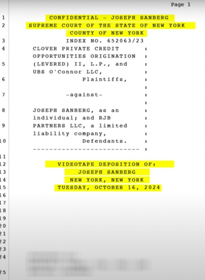 Pablo在节目中晒出了Aspiration创始人Joe Sanberg于2024年10月16日在纽约最高法庭的秘密庭审文件。